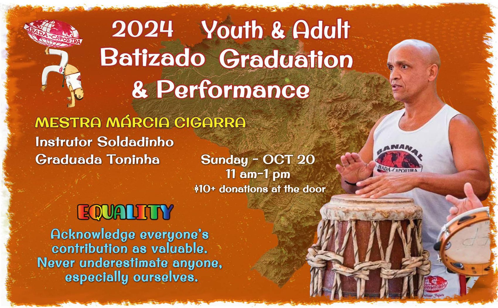 We are thrilled to announce our lead guest artist, Mestrando Pretinho, from Barra Mansa, RJ, Brazil. In addition to Mestrando Pretinho, the event features guest artists from Brazil, and the U.S. and will serve ACSF’s children, teen, and adult students, as well as visiting students who travel to SF to attend the event.