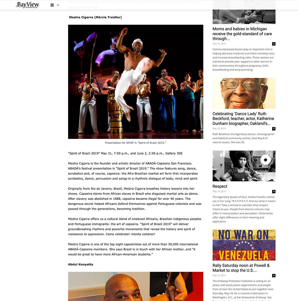 Mestra Cigarra is the founder and artistic director of ABADÁ-Capoeira San Francisco. ABADÁ’s festival presentation is “Spirit of Brazil 2019.” The show features song, dance, acrobatics and, of course, capoeira: the Afro-Brazilian martial art form that incorporates acrobatics, dance, percussion and songs in a rhythmic dialogue of body, mind and spirit.