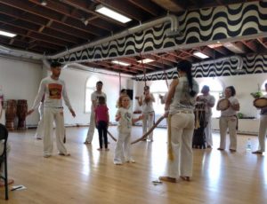 Participants recruited sponsors for their participation. Pledged funds were based on how many movements a student could perform at any “movement station” during the event. Teen and adult capoeira students were there to help as time-keepers, cheerleaders, and to play instruments for the youth.